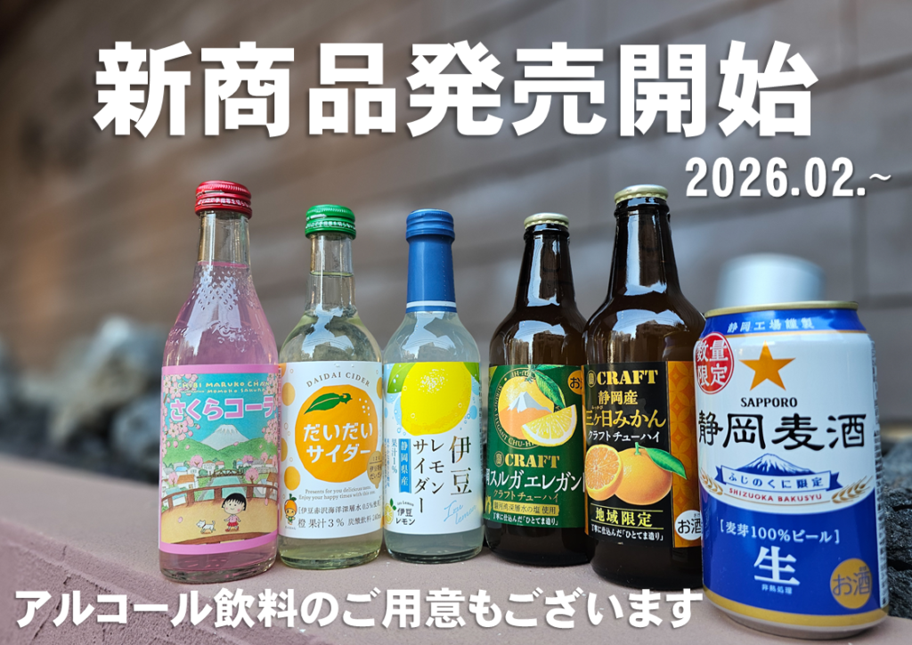 アルコール飲料とソフトドリンク各3種ずつ、すべて静岡・伊豆ならではの